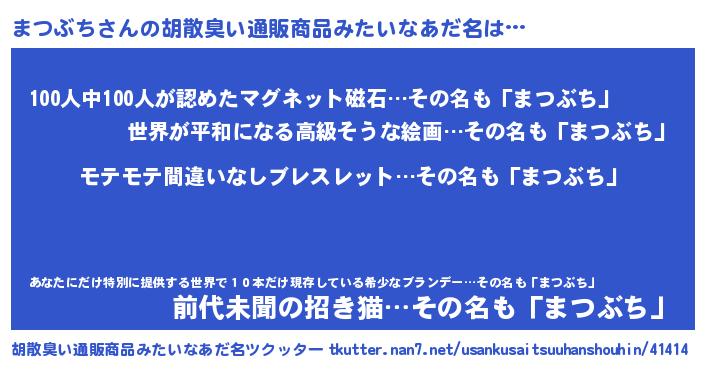 | 男性向けラノベタイトル風あだ名 | 『まつぶちの憂鬱』 |