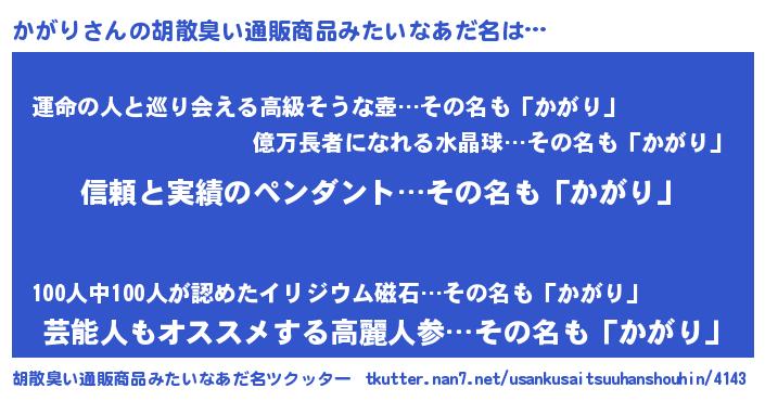 | ヒーロー風カッコイイあだ名 | 『暗黒騎士カガ』『ウルトラかがりマン』 |