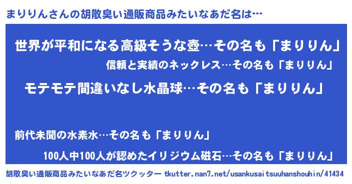 | 意味不明あだ名 | 『ペロリンまりりん』『永久保存まりりん』 |