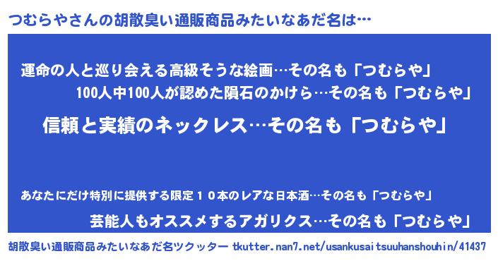 | 意味不明あだ名 | 『とにかく怪しいつむらや』 |