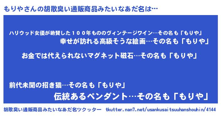 | ヒーロー風カッコイイあだ名 | 『慈愛の使者もりや』『仮面モリダー』 |