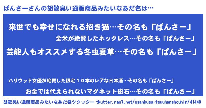 | 意味不明あだ名 | 『自称ぱんさー』『永久保存ぱんさー』 |