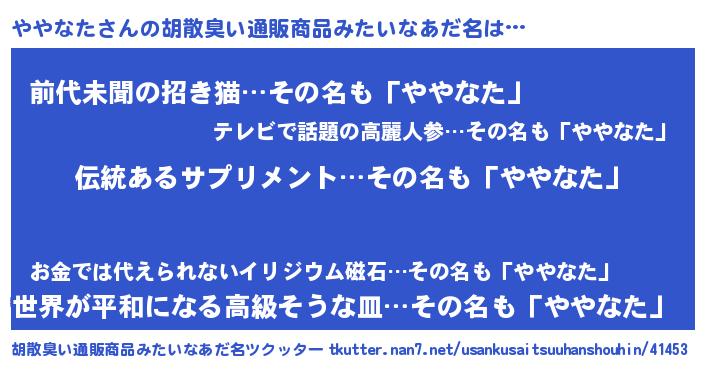 | ヘコむあだ名 | 『ややを』『ややなた(小並感)』 |