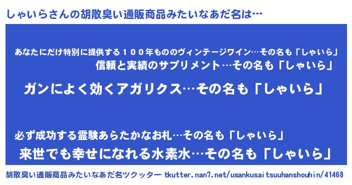 | 恥ずかしいあだ名 | 『シャイラデラックス』『しゃちん』 |