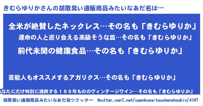 | ヘコむあだ名 | 『きむらゆりか(爆)』『きむ太郎』 |