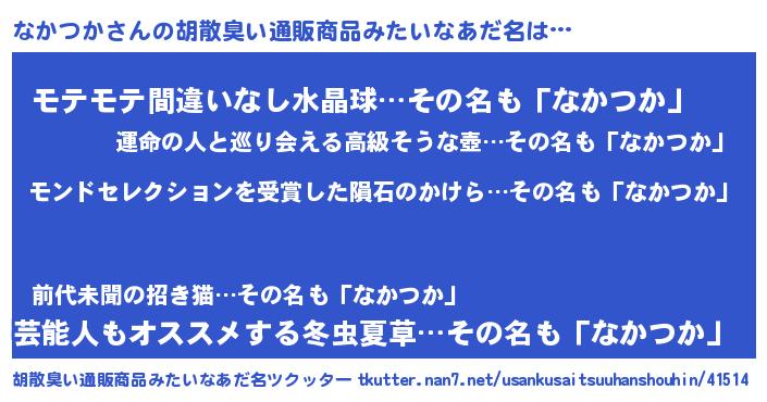 | 欧米人風あだ名 | 『ダニエルなかつか』『マイケルなかつか』 |