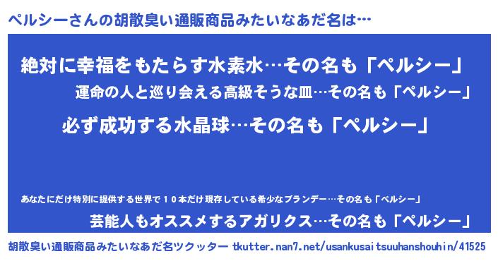 | ヘコむあだ名 | 『ペルにゅー』『ペルシー(笑)』 |