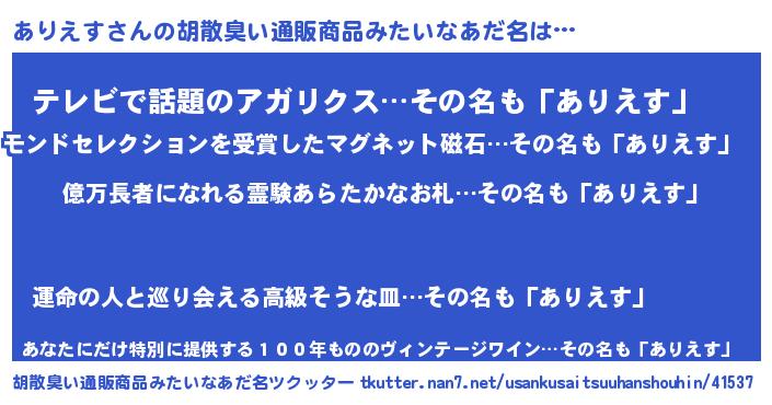 | 意味不明あだ名 | 『ペロリンありえす』『自称ありえす』 |
