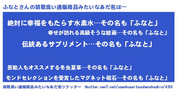 | ヘコむあだ名 | 『ふな太郎』『ふなと(震え声)』 |