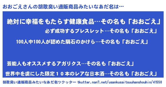 | ヒーロー風カッコイイあだ名 | 『正義の使者おおごえ』『ネオオオゴエ』 |