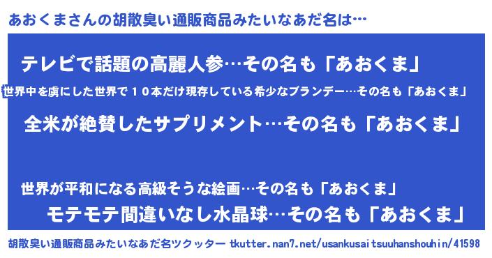 | 意味不明あだ名 | 『とにかく怪しいあおくま』 |