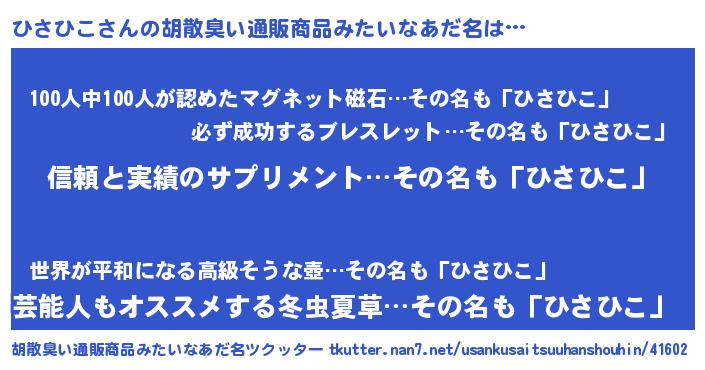 | 意味不明あだ名 | 『とにかく怪しいひさひこ』 |