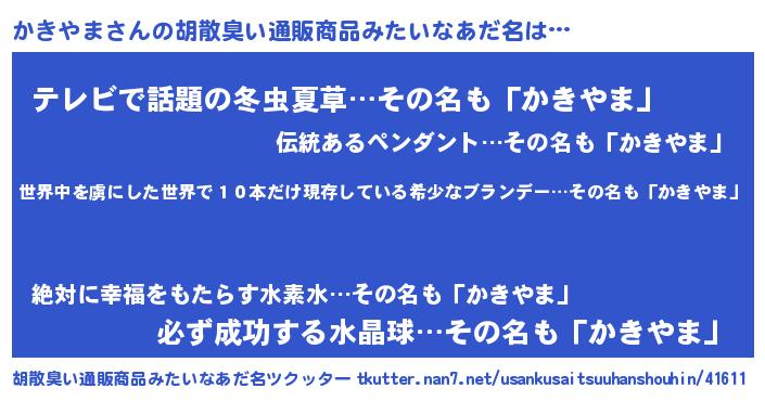 | 意味不明あだ名 | 『住所不定無職かきやま(95歳)』 |