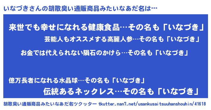 | 男性向けラノベタイトル風あだ名 | 『ノーゲーム・ノーイナヅキ』 |