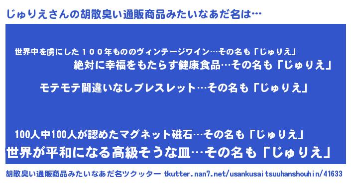 | ヘコむあだ名 | 『じゅにー』『なまこ酢』 |