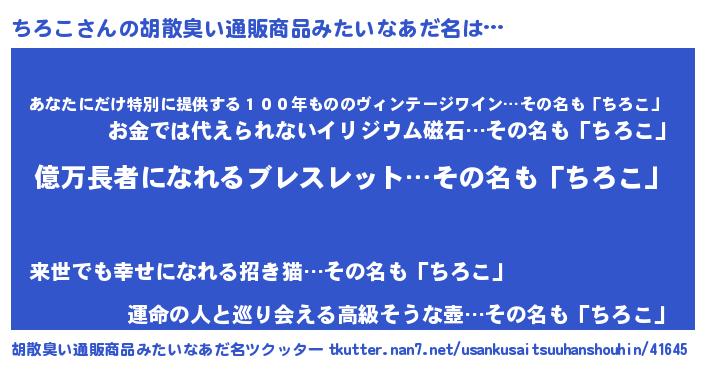 | 意味不明あだ名 | 『ペロリンちろこ』『ちろこフォーエバー』 |
