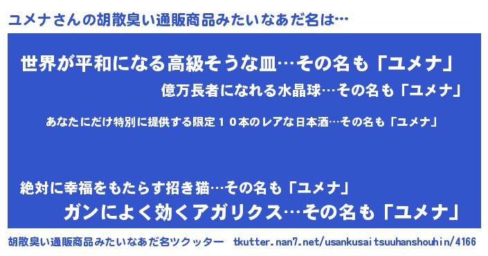 | 恥ずかしいあだ名 | 『ユメっちょ』『ユメナデラックス』 |