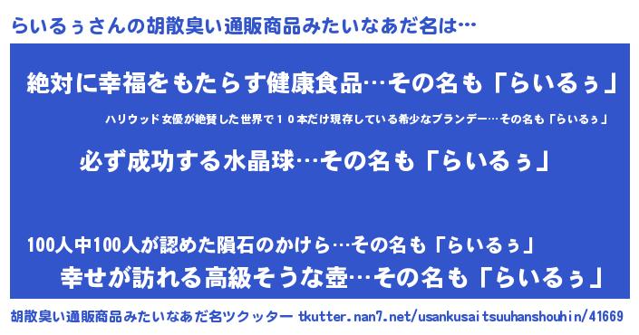 | 意味不明あだ名 | 『ペロリンらいるぅ』『永久保存らいるぅ』 |