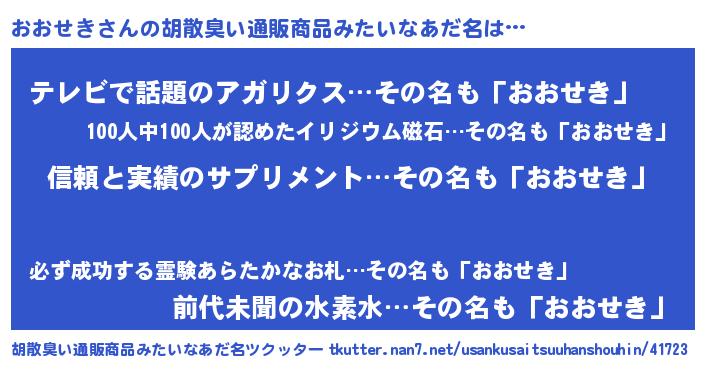 欧米人風あだ名 | 『ウサインおおせき』『ダニエルおおせき』 |