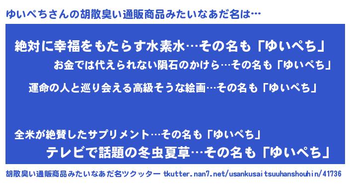 | 意味不明あだ名 | 『ゆいぺちフォーエバー』『自称ゆいぺち』 |