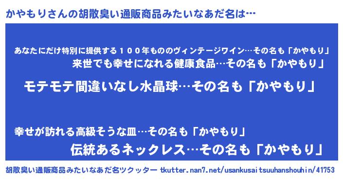 かやもりさんの胡散臭い通販商品みたいなあだ名をツクッター!