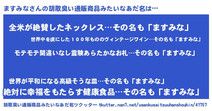 | ヘコむあだ名 | 『ますもー』『ますっぺ』『なまこ酢』 |