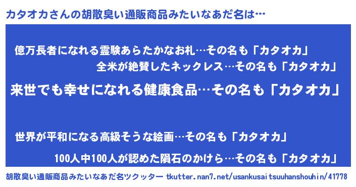 | ヘコむあだ名 | 『カタオカ(笑)』『カタふぇ~』 |
