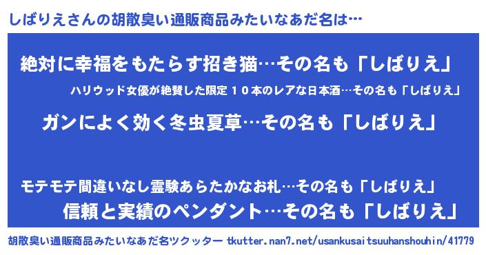 | 意味不明あだ名 | 『自称しばりえ』『永久保存しばりえ』 |