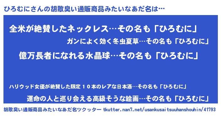 | 意味不明あだ名 | 『ペロリンひろむに』『自称ひろむに』 |