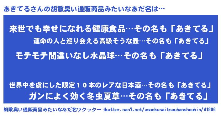 | ヘコむあだ名 | 『あきにゅー』『あきてる(小並感)』 |