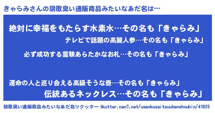 | ヘコむあだ名 | 『きゃっふぃ~』『きゃらみ(小並感)』 |