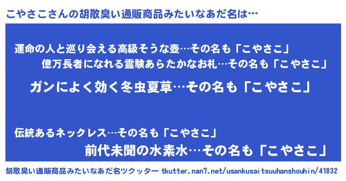 | 意味不明あだ名 | 『自称こやさこ』『つくし科こやさこ属』 |
