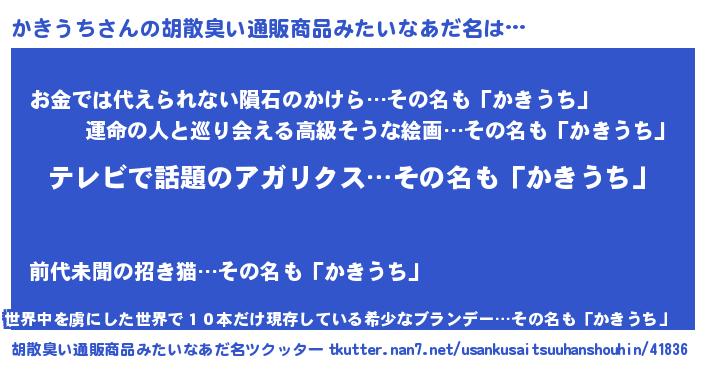 | 意味不明あだ名 | 『自称かきうち』『かきうちフォーエバー』 |