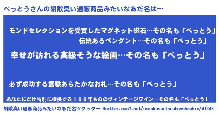 | 意味不明あだ名 | 『べっとうフォーエバー』 |