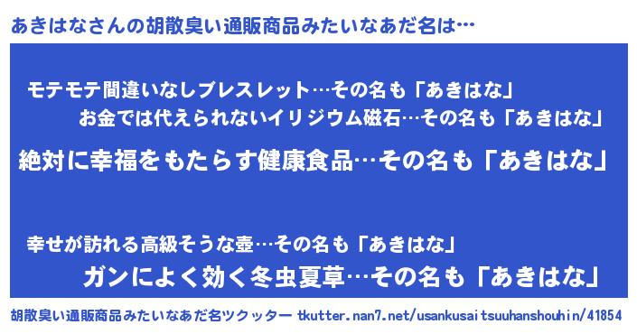 | ヘコむあだ名 | 『あきはな(笑)』『あきふぇ~』 |