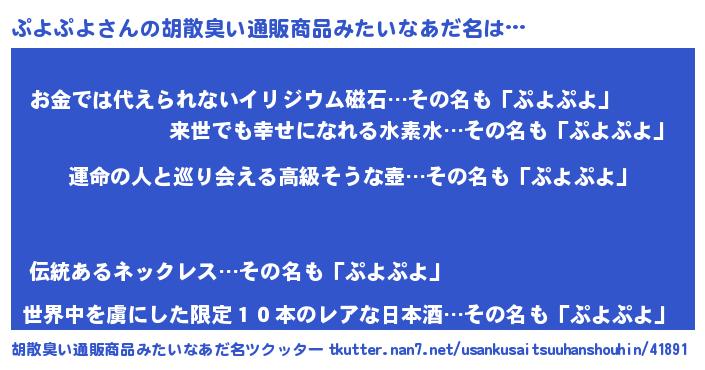 | 女子向けラノベタイトル風あだ名 | 『ぷよぷよの婚約者』『ぷよぷよ恋絵巻』 |