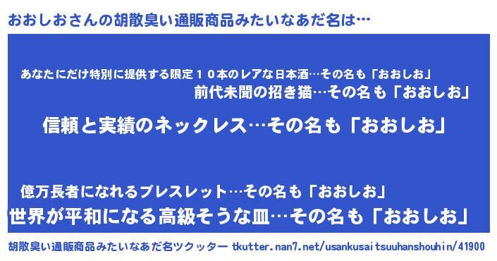 | 意味不明あだ名 | 『とにかく怪しいおおしお』 |