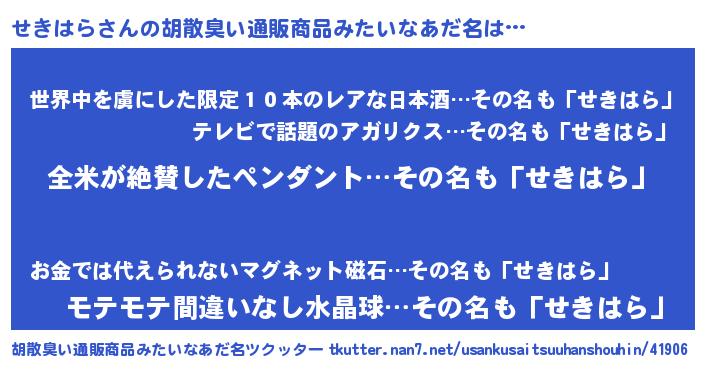 | 意味不明あだ名 | 『とにかく怪しいせきはら』 |