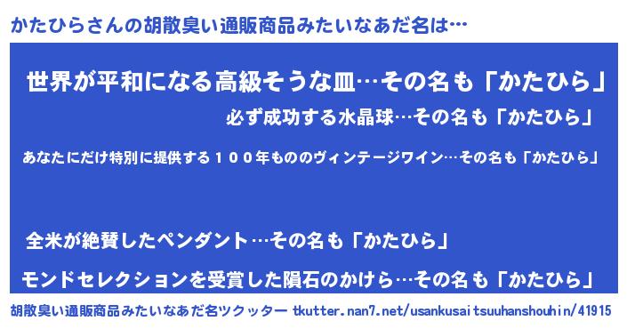 | 意味不明あだ名 | 『住所不定無職かたひら(2歳)』 |