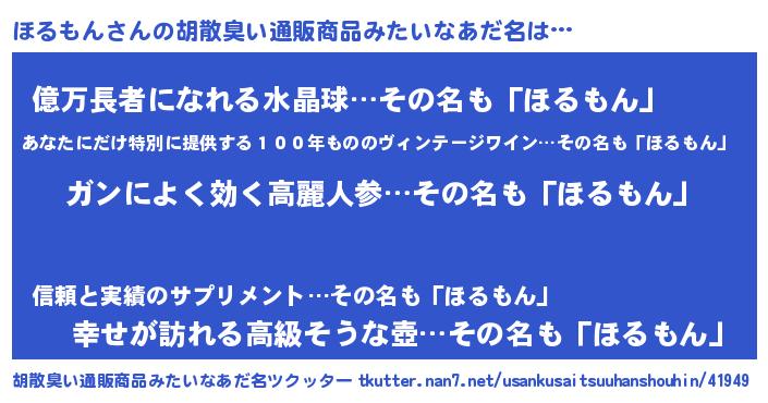 | 意味不明あだ名 | 『自称ほるもん』『ペロリンほるもん』 |