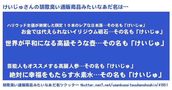 | 意味不明あだ名 | 『けいじゅフォーエバー』『自称けいじゅ』 |