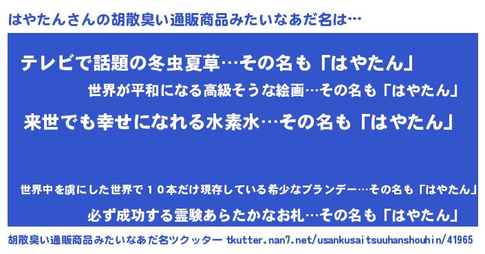 | 意味不明あだ名 | 『永久保存はやたん』『自称はやたん』 |