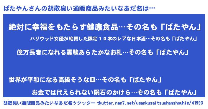 | 意味不明あだ名 | 『ペロリンばたやん』『永久保存ばたやん』 |