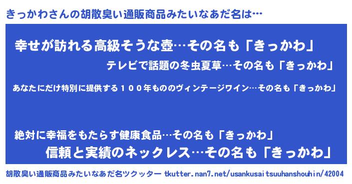 | 欧米人風あだ名 | 『ダレノガレきっかわ』 |