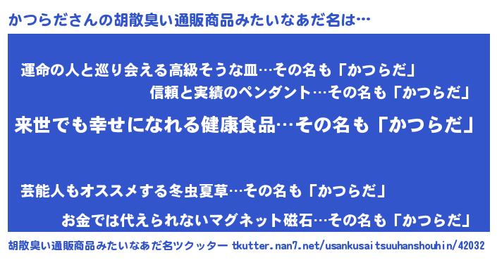 | 料理風あだ名 | 『かつらだごはん』『かつらだのトマト煮』 |