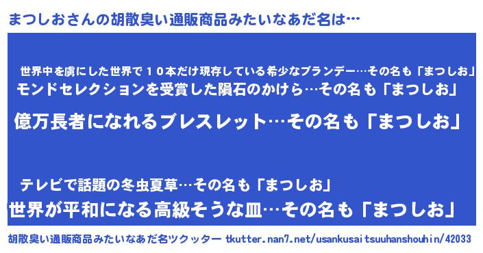 | 意味不明あだ名 | 『ペロリンまつしお』『自称まつしお』 |
