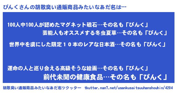 | ヘコむあだ名 | 『ぴんく(爆)』『牛乳』『ぴんっぺ』 |