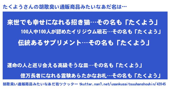 | 意味不明あだ名 | 『とにかく怪しいたくよう』 |