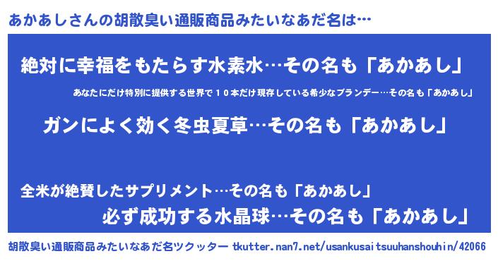 | 意味不明あだ名 | 『自称あかあし』『永久保存あかあし』 |