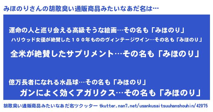 | 意味不明あだ名 | 『とにかく怪しいみほのり』 |